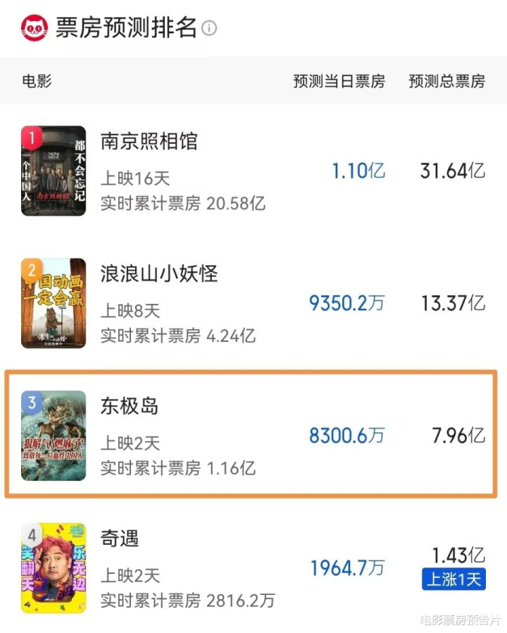 一、《东极岛》预测票房跌至7.9亿。
