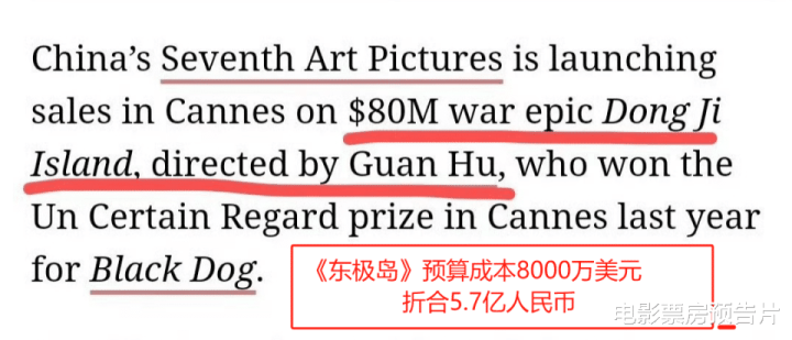 获悉,《东极岛》的预算成本高达8000万美元,折合5.7亿人民币,是一部实打实的国产大制作,管虎是按照工业标准来打造的。
